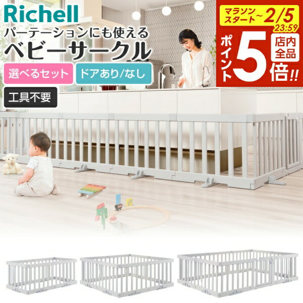 【2/5 全品ポイント5倍】リッチェル パーテーションにも使えるベビーサークル ライトグレー |ベビーガード パーテーション ベビー 赤ちゃん ベビーフェンス 囲み 安全 スペース確保 150 ドア付き テレビの周り テレビ前 ハイハイ 日本製 コの字 長方形 正方形