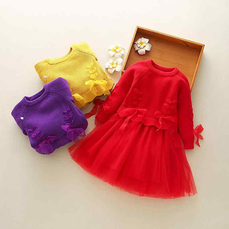秋冬 女の子 プリンセスワンピース 蝶結び ニットドレス 子供服 かわいい ベビースカート キッズ 秋冬服 女児服