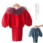 ベビー キッズ 子供服 上下セット ニットワンピース ワンピース ニットトップス スカート リブ編み 可愛い 姫系 セットアップ 秋 冬 ふんわり パ