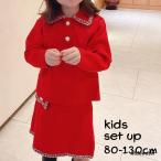 セットアップ 子供服 上下2点セット キッズ ベビー 女の子 長袖 ニット セーター スカート フレア 膝丈 スーツ風 襟付き おしゃれ かわいい ト