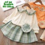 セットアップ 3点セット セーター 長袖 スカート ポシェット キッズ ベビー 子供 女の子 女児 ニット フリル チェック 刺繍 花 パステルカラー