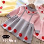 ワンピース ニット キッズ 子供服 ベビー 女の子 長袖 ハイネック りんご柄 吊りスカート風 フレア チュニック かわいい キュート 80 90 1