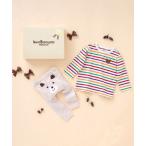 出産祝い ボーダー柄長袖Tシャツ&ベビースパッツセット「BOX付き」