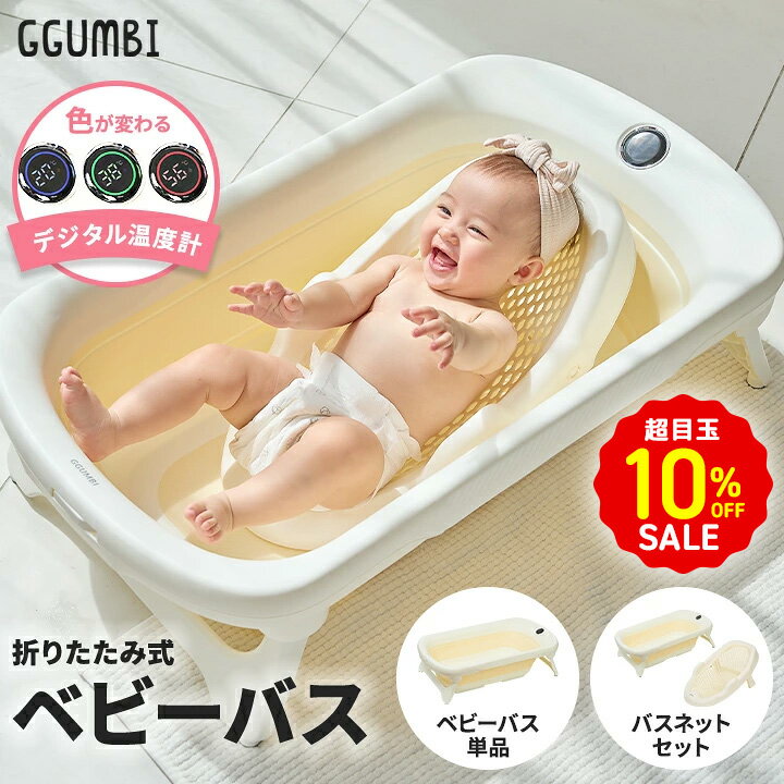 超目玉10%OFF ベビーバス バスタブ バスネット セット 新生児 沐浴 ワンオペ お風呂 便利グッズ バスグッズ 折りたたみ 折り畳み メッシュ ネット デジタル 温度計 湯温計 すべり止め 滑り止め 新生児 ギフト 出産祝い 収納 省スペース 赤ちゃん ベビー GGUMBI グンビ