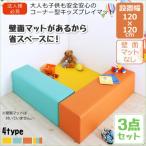 (タイムセール中) キッズコーナー 3点セット フロアマット1枚+スツール2枚 120×120 安全安心コーナー型キッズプレイマット