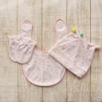 出産祝いギフトにもおすすめの3点セット ベビーミトン お帽子 ベビースタイ プリント総柄 ピンク