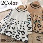 ワンピース ニットワンピース キッズ ベビー 女の子 長袖 ヒョウ柄 レオパード柄 おしゃれ かわいい ラウンドネック 裏起毛 暖かい 子供服 80c