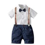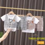 ベビータキシード 普段着用 新生児 幼児 プレゼント 連体服 カバーオール ロンパース チェック柄 グレー 半袖 セレモニースーツセット 記念品 礼装 正装 保育園