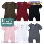 カバーオール ロンパース 半袖 半ズボン ベビー 赤ちゃん 新生児 男の子 女の子 股下ボタン リブニット ハーフボタン つなぎ オールインワン 赤ん