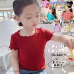 カットソー Tシャツ 半袖 トップス キッズ ベビー 子供服 フレア フリル シンプル 無地 切り替え パフスリーブ 丸首 ラウンドネック ボリューム