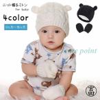 ベビー帽子 ミトン 2点セット ニット帽 手袋 子供用 ベビー 赤ちゃん 新生児 男の子 女の子 耳付き クマ みみ ワッチキャップ 無地 シンプル