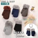 手袋 ミトン 紐付き キッズ ベビー 子供用 女の子 男の子 ニット 裏起毛 裏ボア フェイクファー シンプル モコモコ 防寒 防風 寒さ対策 暖かい