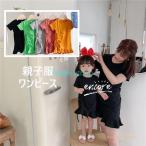 こども服 ワンピース 可愛い 春夏 女の子 ベビー レディース キッズ 大人 半袖 フレア 綿100% 無地 おしゃれ 親子服 姉妹服 カジュアル ジュニア服 5色