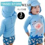 水着 キッズ 子供水着 こども 3点セット UVカット 帽子付け フィットネス ベビー水着 男子 男児 ボーイズ 可愛い みずぎ スイムウェア UV対策 日焼け防止