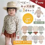 水着 ベビー キッズ 女の子 スイムウェア 上下セット 帽子付き 3点セット ラッシュガード パンツ UV 子供 夏 海 プール 長袖 紫外線対策 保育園 小学生 おしゃれ