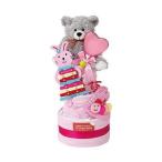 アークフラワースタジオ おむつケーキ3段 女の子 紙おむつSサイズ・約34×80cmタオル・クマのぬいぐるみ・ベビー帽子・木琴・バルーン 1046-063 代引不可