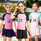 水着 女の子 2点セット キッズ ラッシュガード ワンピース 日焼け防止 ビーチ スポーツ 子ども用 スクール スイミング 子ども水着 水泳 中学生 小学生 幼稚園
