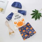 カニ柄ベビー水着 帽子付き3点セット ラッシュガード水着 セパレート水着 キッズ水着 子供スイムウェア スイミング 水遊び プールスターSZ