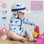 ベビー 水着 ラッシュガード 赤ちゃん水着 男の子 ロンパース 半袖 キャップつき 2点セット UVカット 女の子 キッズ水着 オールインワン 子供 スイミング 花柄