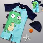 ベビー 水着 男兒オールインワン ロンパース 半袖ラッシュガード 子供水着 帽子付 可愛い 恐竜柄 プール ビーチ 夏 海水浴 赤ちゃん スイムウェア