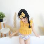ベビー 水着 女の子 オールインワン ワンピース カチューシャ付き ベビー水着 キッズ 女児 可愛い プール スクール水着 フリル 80 90 100 110 120 130