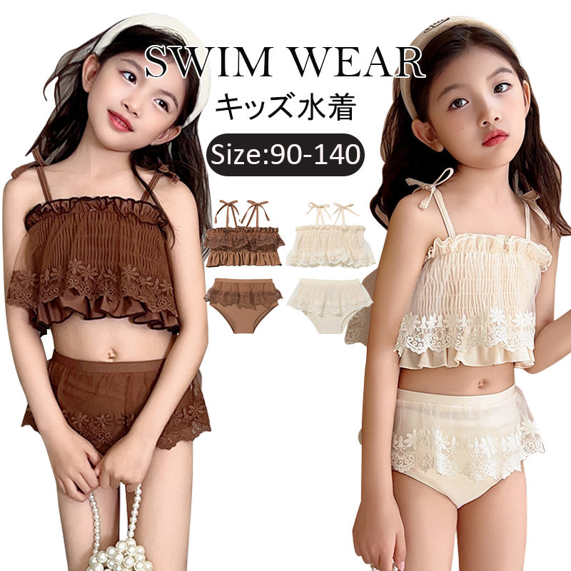あす楽 キッズ 水着 女の子 セパレート 2点セット レース ベビー水着 スイムウェア 水着 キッズ ノースリーブ ビキニ スイムスーツ ビーチウェア 水泳 スクール水着 キッズ ジュニア 練習着 子供 みずぎ キッズ水着 リゾート ミズギ 水陸両用 90cm-140cm