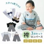 袴ロンパース ベビー袴 男の子 家紋 ベビー 赤ちゃん スタイ 足袋 靴下 お食い初め 節句 百日祝い フォーマル 60 70 80 90