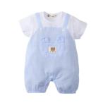 ベビー服 ロンパース サッカーストライプ くま サロペット風 半袖カバーオール