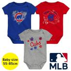 MLB公式 55-85cm ボディスーツ3枚セット ロンパース ベビー服 半袖 肌着 出産祝い シカゴ・カブス Chicago Cubs