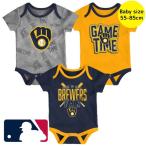 MLB公式 55-85cm ボディスーツ3枚セット ベビー服 ロンパース 出産祝い ミルウォーキー・ブリュワーズ Milwaukee Brewers
