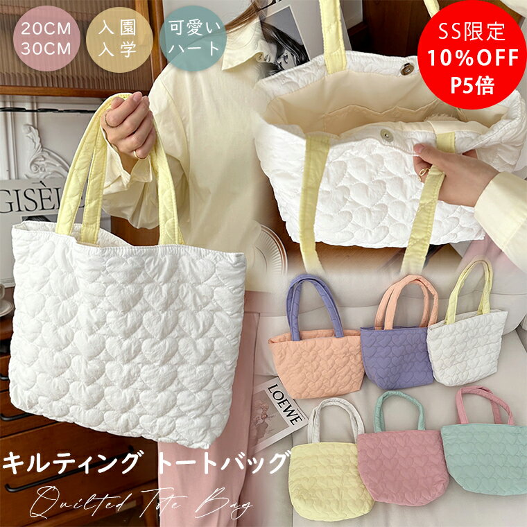 \★SS限定11%OFF!P5倍/ レッスンバッグ 女の子 キルティング キルト バッグ かばん ナイロン 韓国 かわいい おしゃれ シンプル くすみカラー 手提げバッグ 子供 小学生 小学校 マザーズバッグ トート トートバッグ ポケット 大きめ 小さめ 20cm 30cm 洗える 通勤 軽量