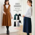 授乳服 マタニティ 服 スカート 授乳しやすい セット リブ ニット トップス ジャンパースカート セット 妊婦服 トップス ボトムス おしゃれ
