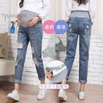 マタニティ パンツ 服 ズボン スキニー ボトム デニム ダメージ加工 ウエスト調整 伸縮 妊婦 春 夏 秋 産前産後 ズボン ボトムス 初期 中期