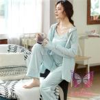 マタニティ パジャマ レディース 3点セット 長袖 ルームウェア 前開き 授乳口付き 綿100% ウエスト調整 産前 産後 授乳 入院 春夏 授乳服 秋