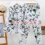 マタニティ パジャマ 授乳口付 ホームウェア 授乳服 妊婦服 上下セット 産前産後ウェア 2点セット 長袖 レース 総柄 出産祝い 部屋着 寝巻き 大きいサイズ