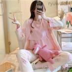 授乳服 パジャマ レディース マタニティ 長袖 春 夏 秋 綿 授乳パジャマ 授乳口付 寝巻き ルームウエア 部屋着 3点セット ママ 大きいサイズ 産前産後 妊娠