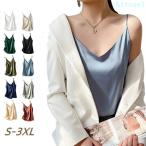 インナー レディース シルク キャミソール サテン タンクトップ 大きいサイズゾンチー脇汗 ゆる トップス 袖なし ブラウス ショート丈 リブ ルームウェア 重ね着