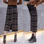 マタニティスカート チェック柄 ロングスカート ラシャ タイトスカート レディース バッグヒップ 妊娠ボトムズ 妊婦服 ウェスト調節可能 スリット 柔らかい