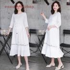 ワンピース レディース 40代 マキシワンピース 春夏秋 七分袖ワンピース シフォン ロング丈スカート ひざ下 オシャレビーチ 大人 ゆったり マタニティーワンピ