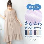 マタニティ パジャマ ルームウェア 前開き 半袖 ワンピース 春 夏 綿100% 授乳口付き ダブルガーゼ ネグリジェ ロング丈 コットン 大きいサイズ v2-77607all