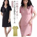 ワンピース パッド入り マタニティウェア ネグリジェ 授乳 半袖 Vネック 部屋着 カシュクール 授乳ウェア マタニティパジャマ ルームウエア 産前
