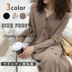 マタニティ 服 妊婦服 授乳服 ワンピース おしゃれ 春 秋 冬 お宮参り フォーマル 長袖 前開き リブニットワンピース モカベージュ ブラック