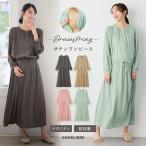 授乳服 マタニティ ワンピース ヴィンテージサテン 前開き 長袖 長そで グリーン ピンク ベージュ チャコール 無地 お宮参り 仕事服 オフィス