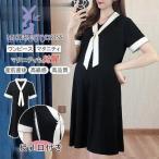 マタニティ ワンピース ドレス 結婚式 お呼ばれドレス 袖あり 半袖 膝丈 大きいサイズ 3L 4L 5L 襟付きワンピース 大人可愛い 黒 体型カバー 妊婦 服