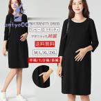 マタニティ ワンピース レディース 秋 ロング 大きいサイズ Vネック 五分袖 ゆったり シンプル 体型カバー 韓国