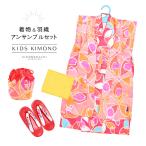 (Prices down)女の子 着物セット「サーモンピンク×桃色 桜」アンサンブル 着物 兵児帯 羽織 草履 巾着 3歳〜4歳 5歳〜6歳 7歳〜8歳 9歳〜10歳 (メール便不可)