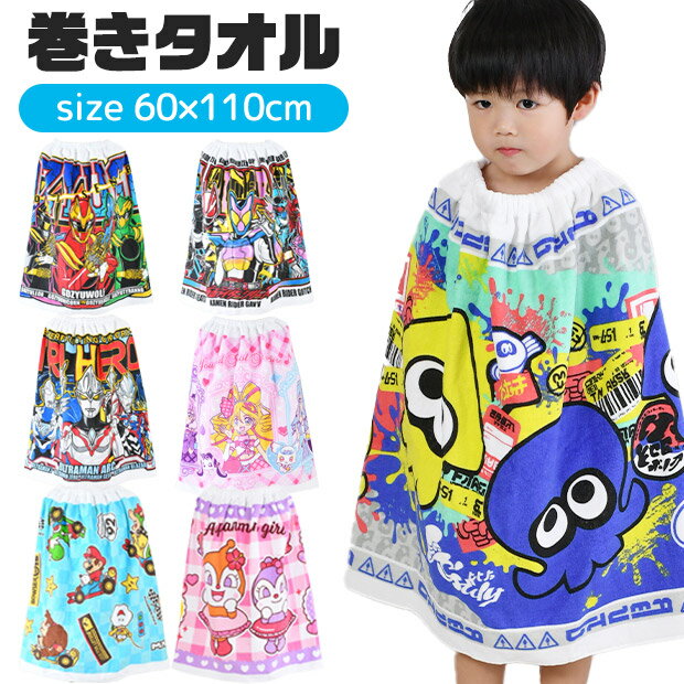 【楽天スーパーSALE 20%OFF 送料無料】巻きタオル ラップタオル プールタオル タオル キャラクター 60cm 小学生 幼稚園 子供 夏 水遊び 仮面ライダー ゴジュウジャー ウルトラマン マリオ スプラトゥーン3 アンパンマン キミとアイドルプリキュア 水泳 習い事 キッズ 男