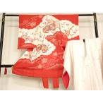 初着レンタル産着和装 和服期間限定お宮詣り正絹のしめ花 箔 赤 ピンク 朱色女の子 祝着掛け着物赤ちゃんベビー キッズ【貸衣裳・貸衣装】発送料無料お宮参りお初着レンタル女児 No.111ーbb