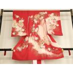 初着レンタル産着和装 和服期間限定お宮詣り正絹のしめ花 蝶 赤 真紅 赤地女の子 祝着掛け着物赤ちゃんベビー キッズ【貸衣裳・貸衣装】発送料無料お宮参りお初着レンタル女児 No.5434ーbb