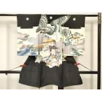初着レンタル産着和装 和服期間限定紋付お宮詣り正絹のしめ鷹 鷲 鳥 富士山黒 黒地男の子 祝着掛け着物赤ちゃんベビー キッズ 【貸衣裳・貸衣装】発送料のみ無料お宮参りお初着 男児No.い-bb